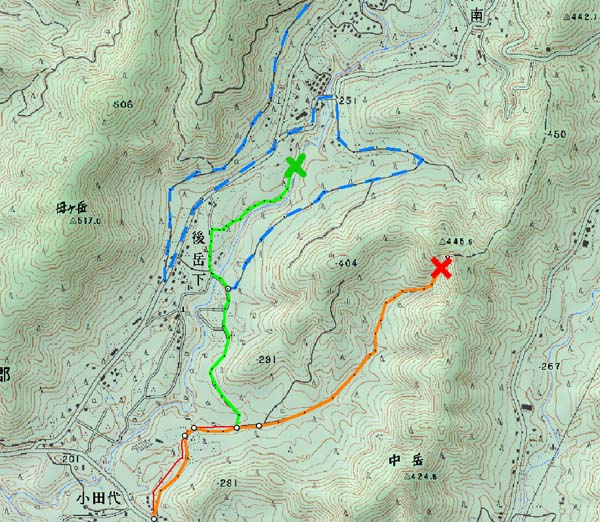 何度も走って確認するが、合わない。コマ図より100mぐらい先に林道の入口発見。